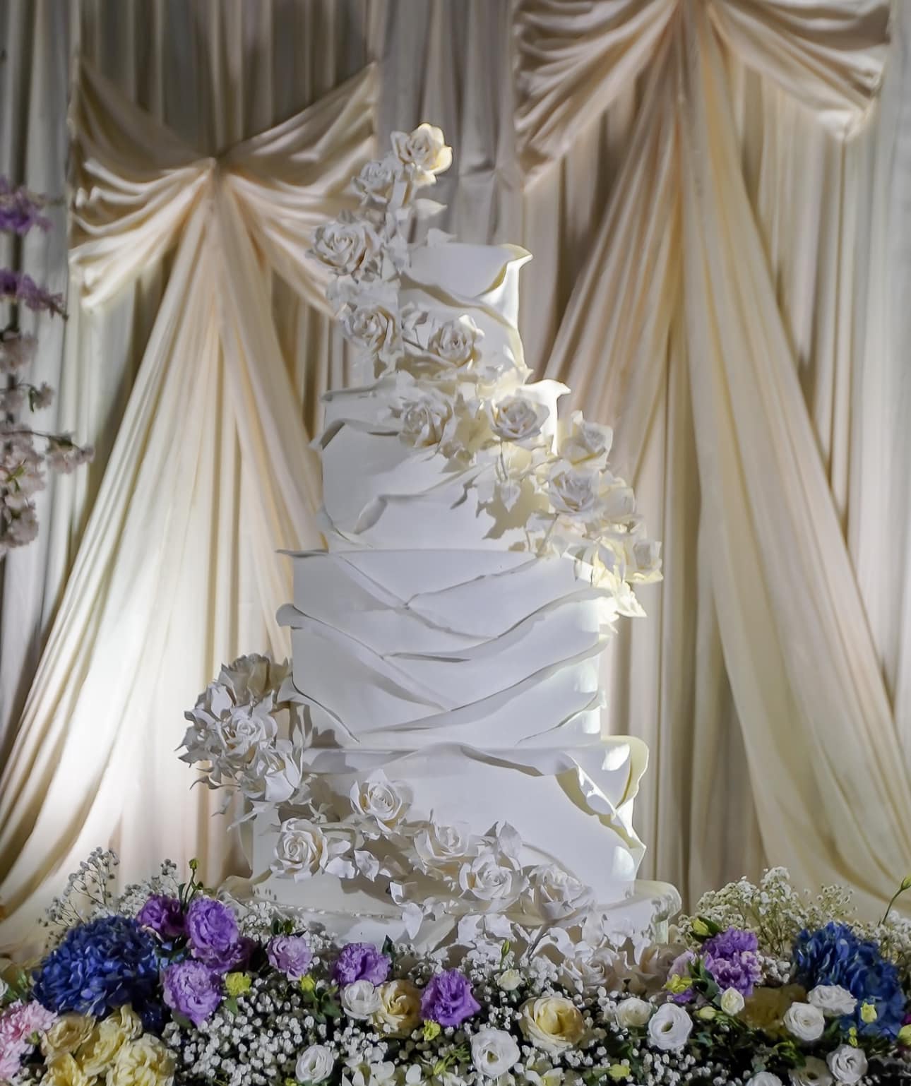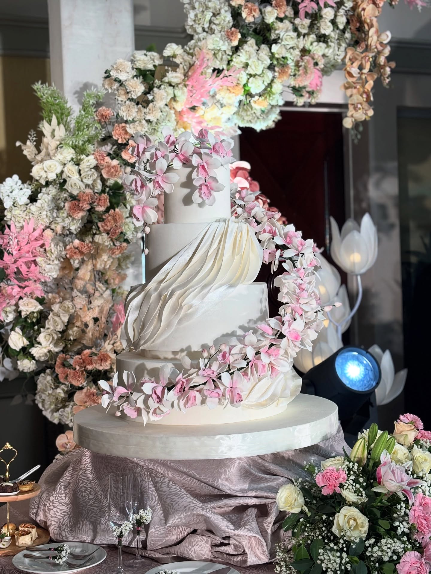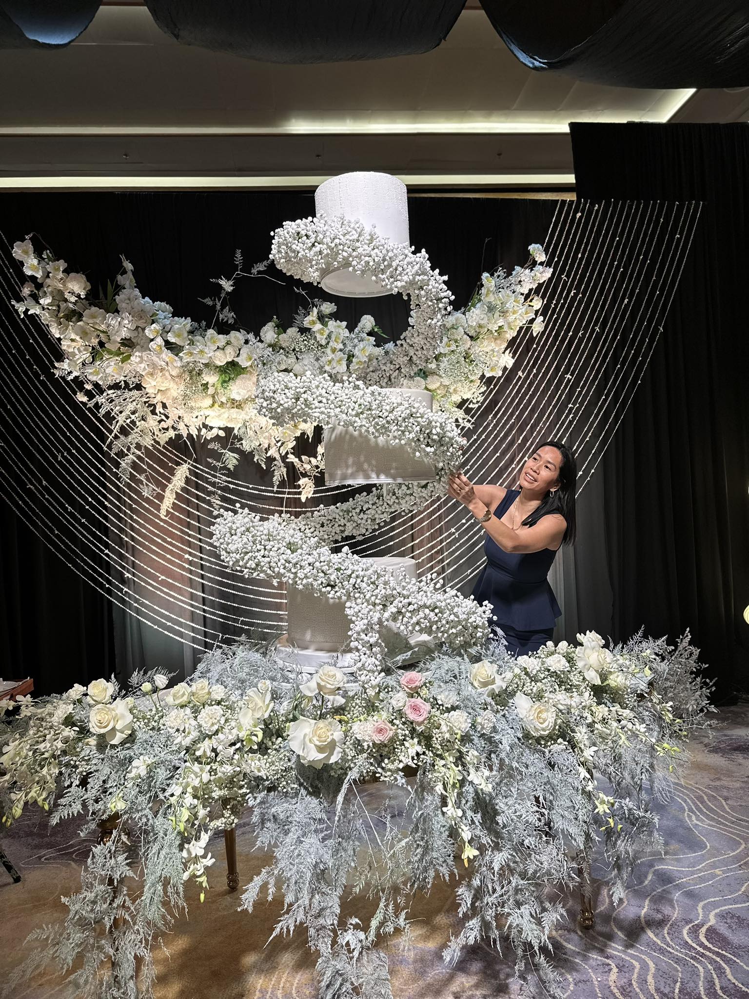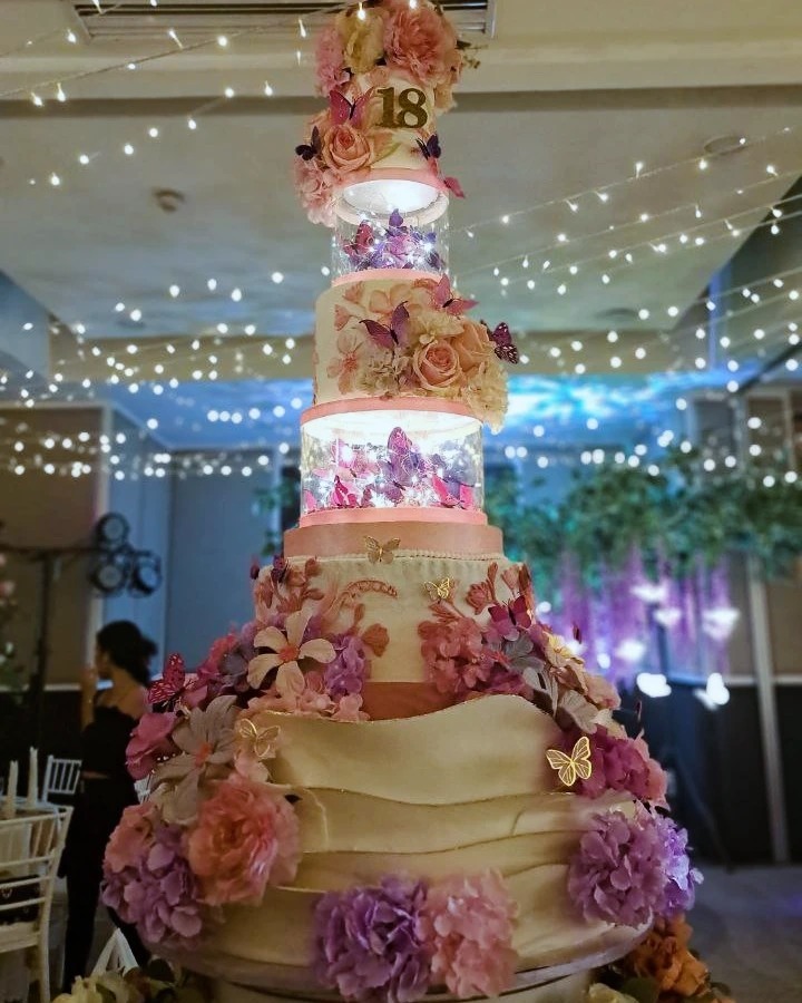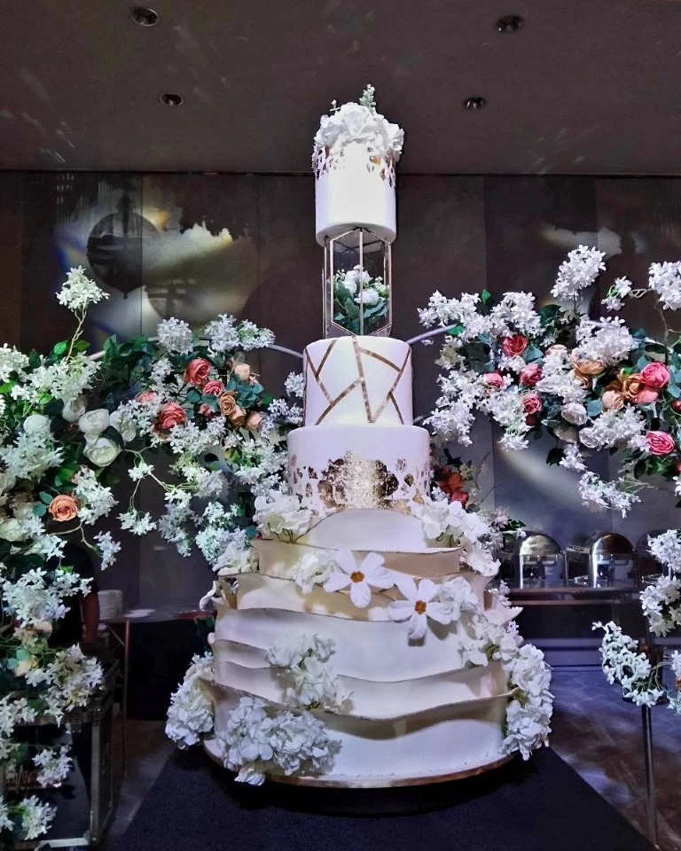 They’re known for pushing limits. Their team says yes to bold ideas—whether that’s a cake hanging from the ceiling, a fully real eight-tier build, a moving or light-up design, or their viral creations such as a lifesize fountain cake and a cake so large the celebrant could step inside it. One of their most memorable pieces was a floor-to-ceiling cake for a seven-year-old, a project that ended up on national television.