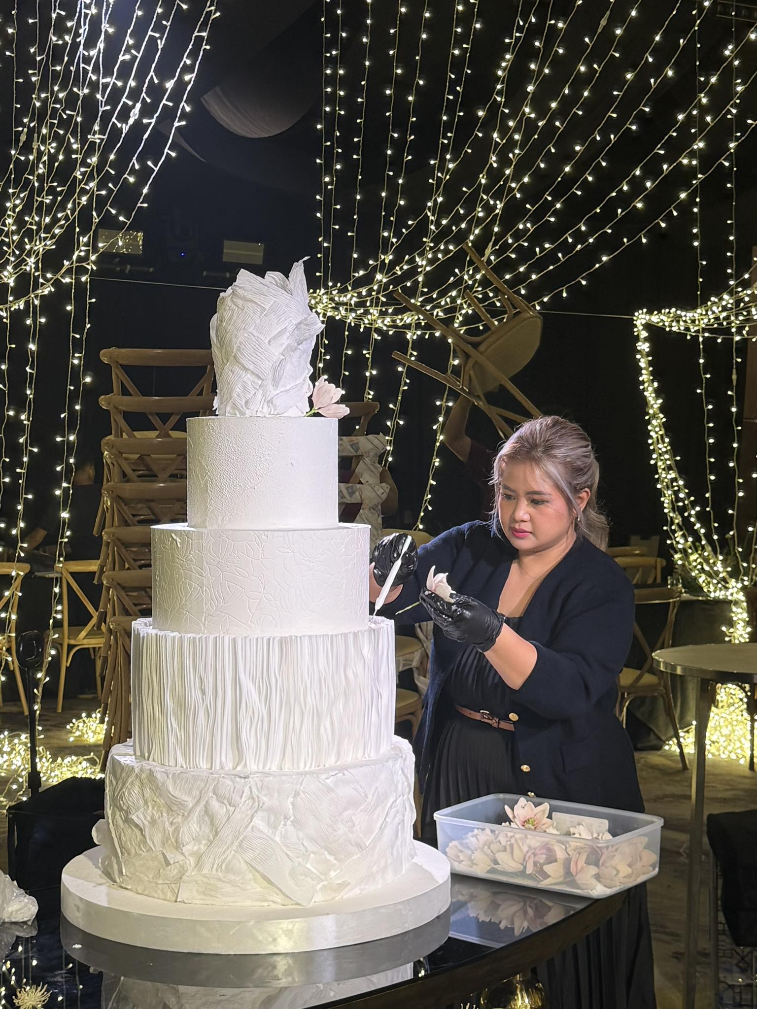 One of her most memorable projects was a last-minute commission: a cake tasting called just seven days before the wedding, followed by the creation of a six-tier, fully edible wedding cake on a very tight deadline. The trust placed in her became one of the turning points of her cake journey.